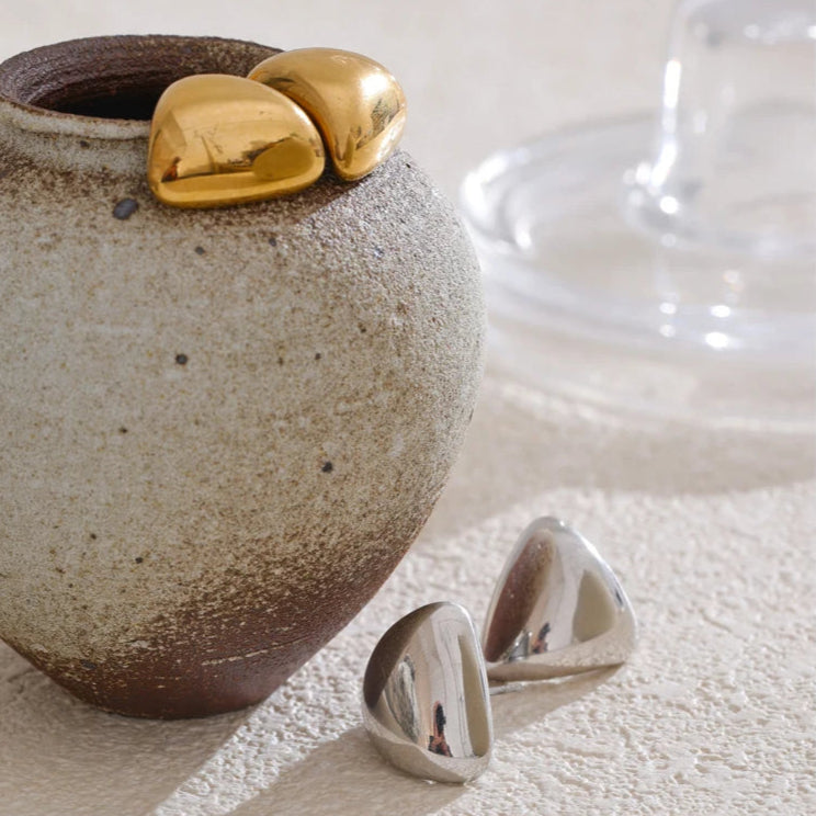 Sleek and contemporary, these triangle stud earrings are a staple for minimalist jewelry lovers. Handmade from polished stainless steel and coated with 18K PVD real gold plating, they offer a clean geometric silhouette perfect for everyday elegance.