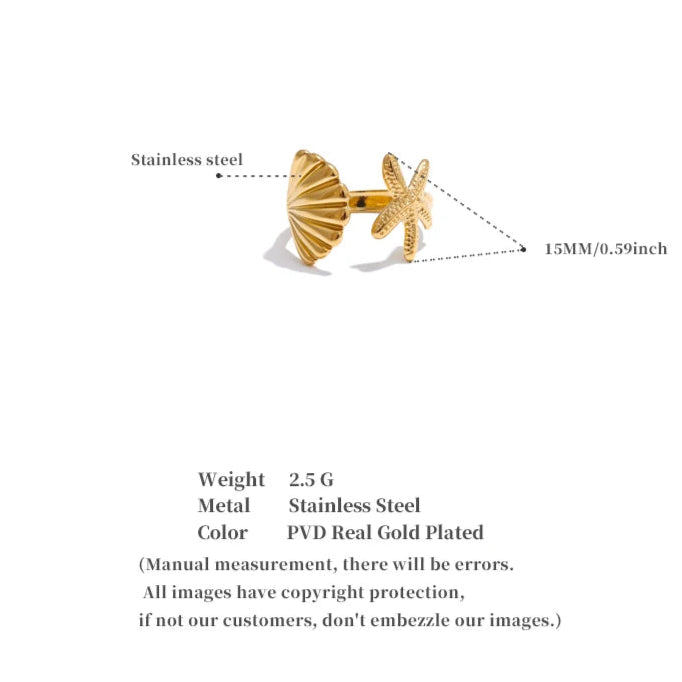 - Design: Open ring with shell and starfish details